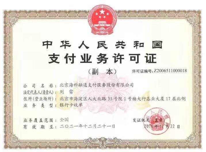 海科融通POS機是屬于北京海科融通支付服務股份有限公司旗下的刷卡機產品,北京海科融通是第一批就獲得了人行授予的支付牌照,是正規從事移動POS機銷售業務的支付公司,并且核準在全國范圍內從事銀行卡收單業務。
