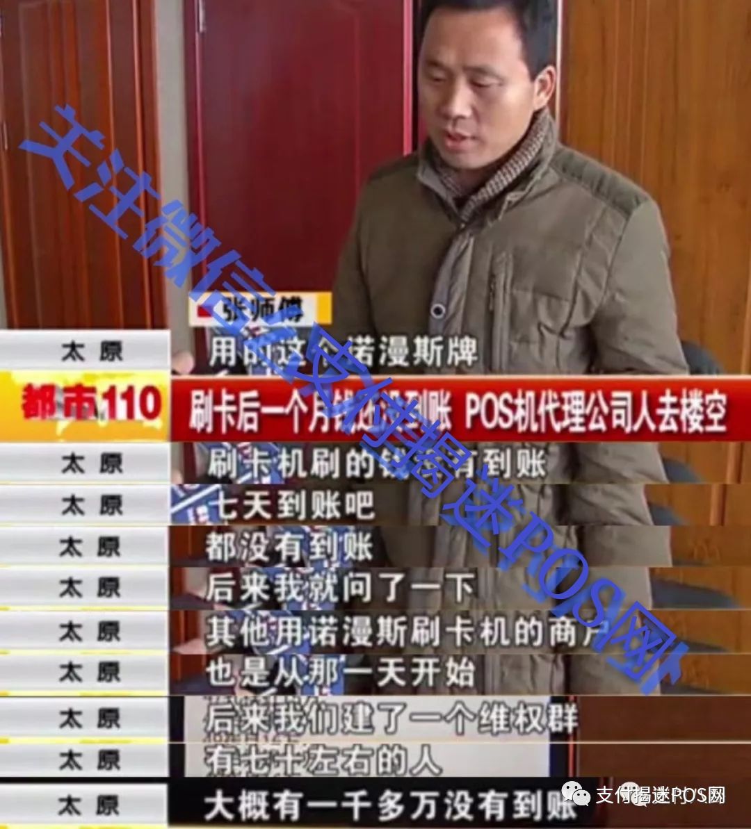 視頻中張師傅表示自己用“諾漫斯“牌的POS機,刷了3萬多元錢一直沒有到賬!據張師傅介紹:”諾漫斯“的這個POS機刷卡后是7天到賬,但是已經過了四個7天了,依然遲遲不見到賬信息!于是張師傅便聯系了同樣在使用”諾漫斯“品牌POS機的其他商戶,大家都表示自己刷的錢也沒有到賬!據了解此次刷卡不到賬涉及70多人,累計不到賬金額一千多萬元!